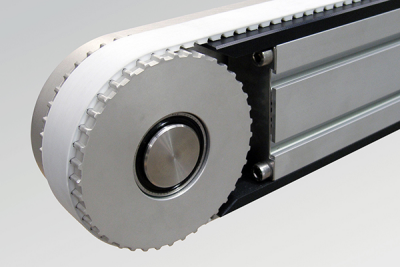 Physically, a timing belt conveyor consists of at least one timing (toothed) pulley and at least one idler pulley (usually another toothed pulley) around which the timing belt wraps.