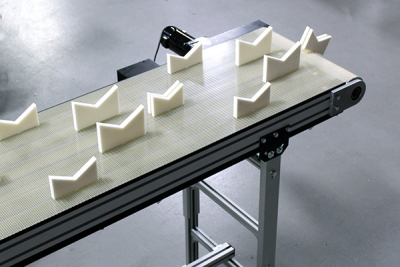 Different types of belts will provide different levels of accuracy. In addition, the choice of motor will have a large impact on the accuracy of the conveyor system. In many cases, the use of stepper or servo motors may be preferable to the use of standard industrial motors. Controllers can be added to the conveyor package and used with the selected motor to create specific motion patterns; this is ideal for indexing and stepping applications. In applications where the highest degree of product positioning and accuracy is required, it is preferable to position the product between cleats on the belt or within fixtures, although these attachments do introduce new tolerances. It is possible to visually position the product or the cleats using a photoelectric eye and, for even greater accuracy, the product can be positively positioned by means of a locating or centring device. These devices are usually pneumatic, but motorised modules are becoming increasingly popular.
